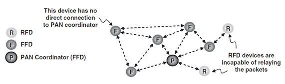 Dispositivo de funcionalidad reducida (RFD): También conocido como nodo pasivo. Tiene capacidad y funcionalidad limitadas (especificada en el estándar) con el objetivo de conseguir un bajo coste y una gran simplicidad. Básicamente, son los sensores/actuadores de la red.