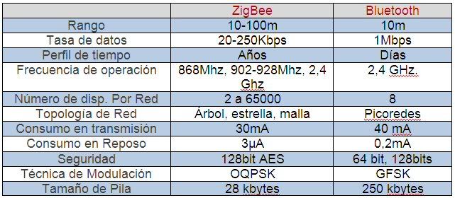 · Zigbee trabaja de manera que no puede ser compatible con bluetooth en todos sus aspectos porque no llegan a tener las mismas tasas de transferencia, ni la misma capacidad de soporte para nodos.